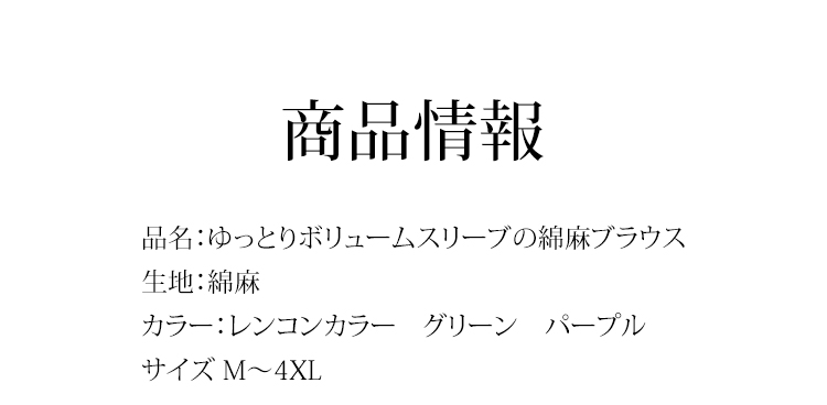 ゆったりボリュームスリーブの綿麻ブラウス正面画像