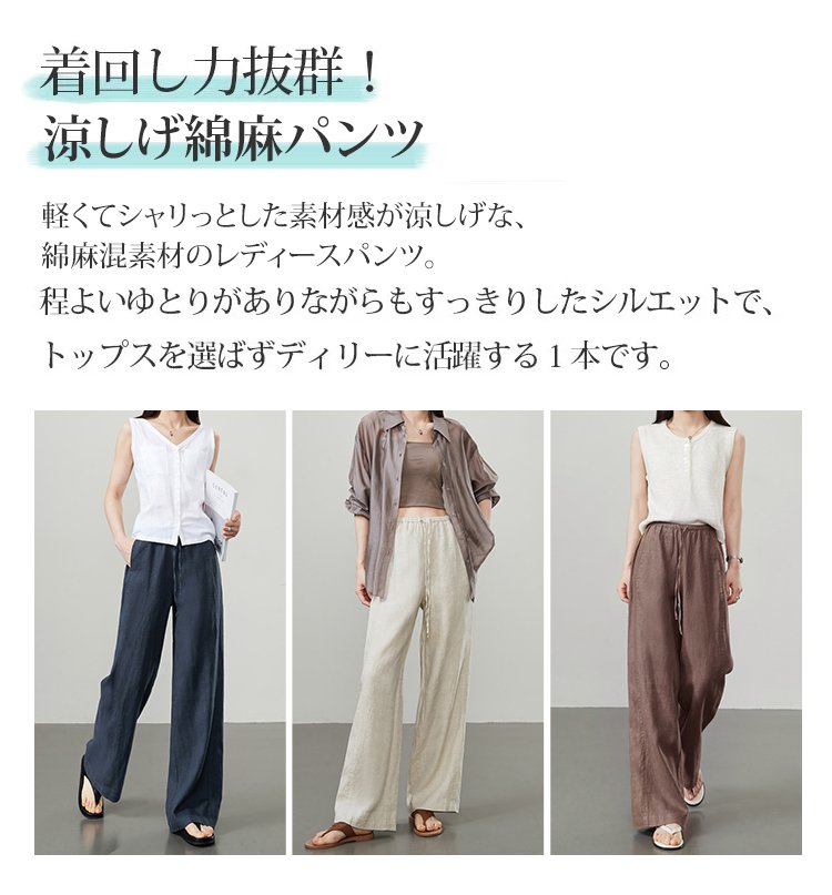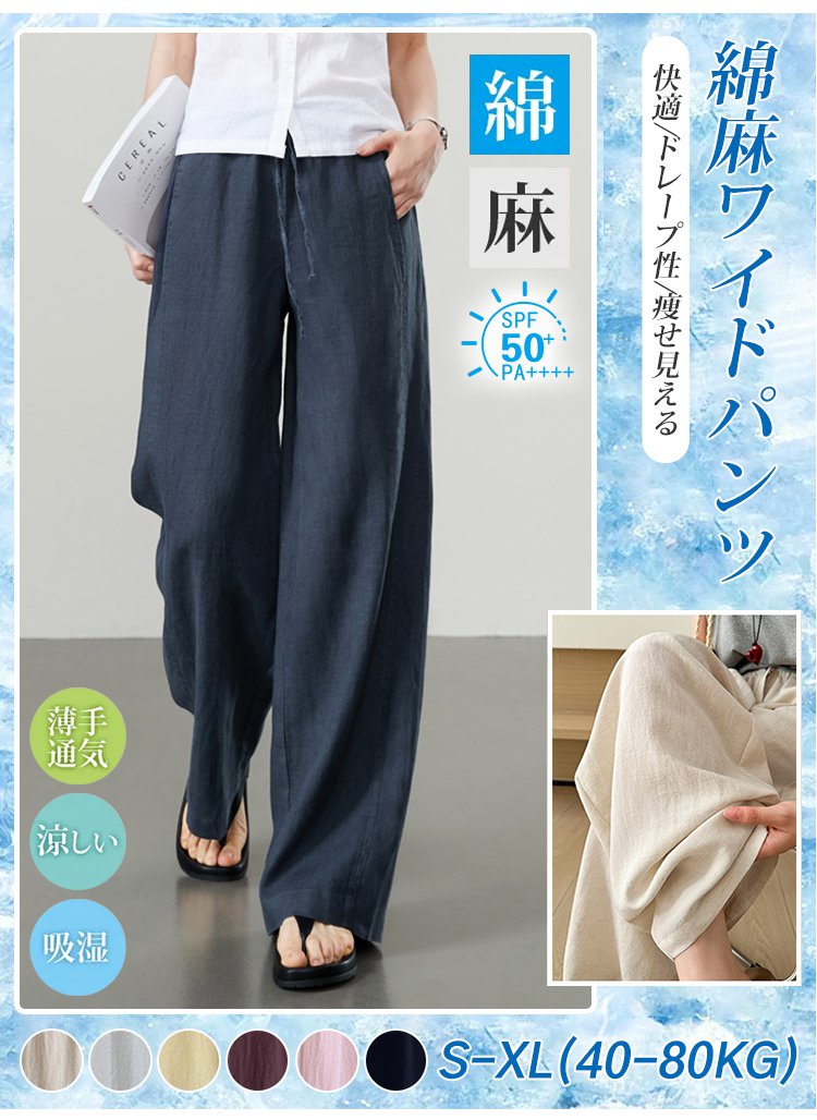 【富士吉田百年工房製】夏用綿麻ワイドパンツ、期間限定半額!!